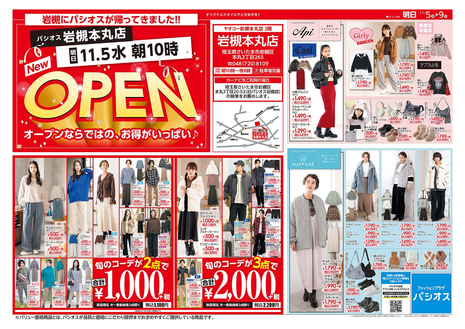 【新店】11/5(水)「ヤオコー岩槻本丸店」にファッションプラザ【パシオス】が新店をオープン