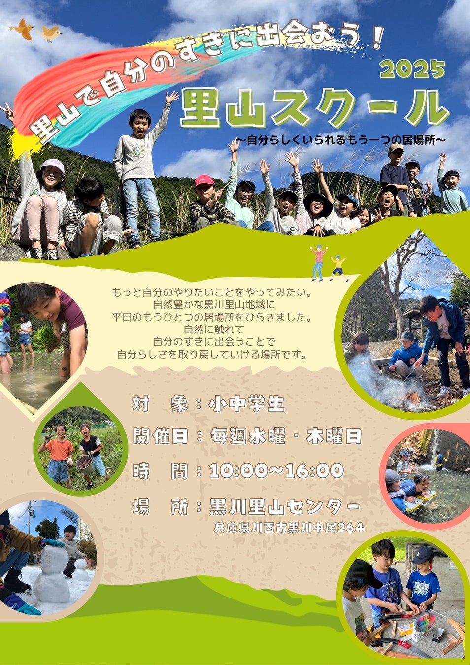 黒川里山センター(兵庫県川西市黒川)で水曜日と木曜日に実施している、小中学生のための居場所です。