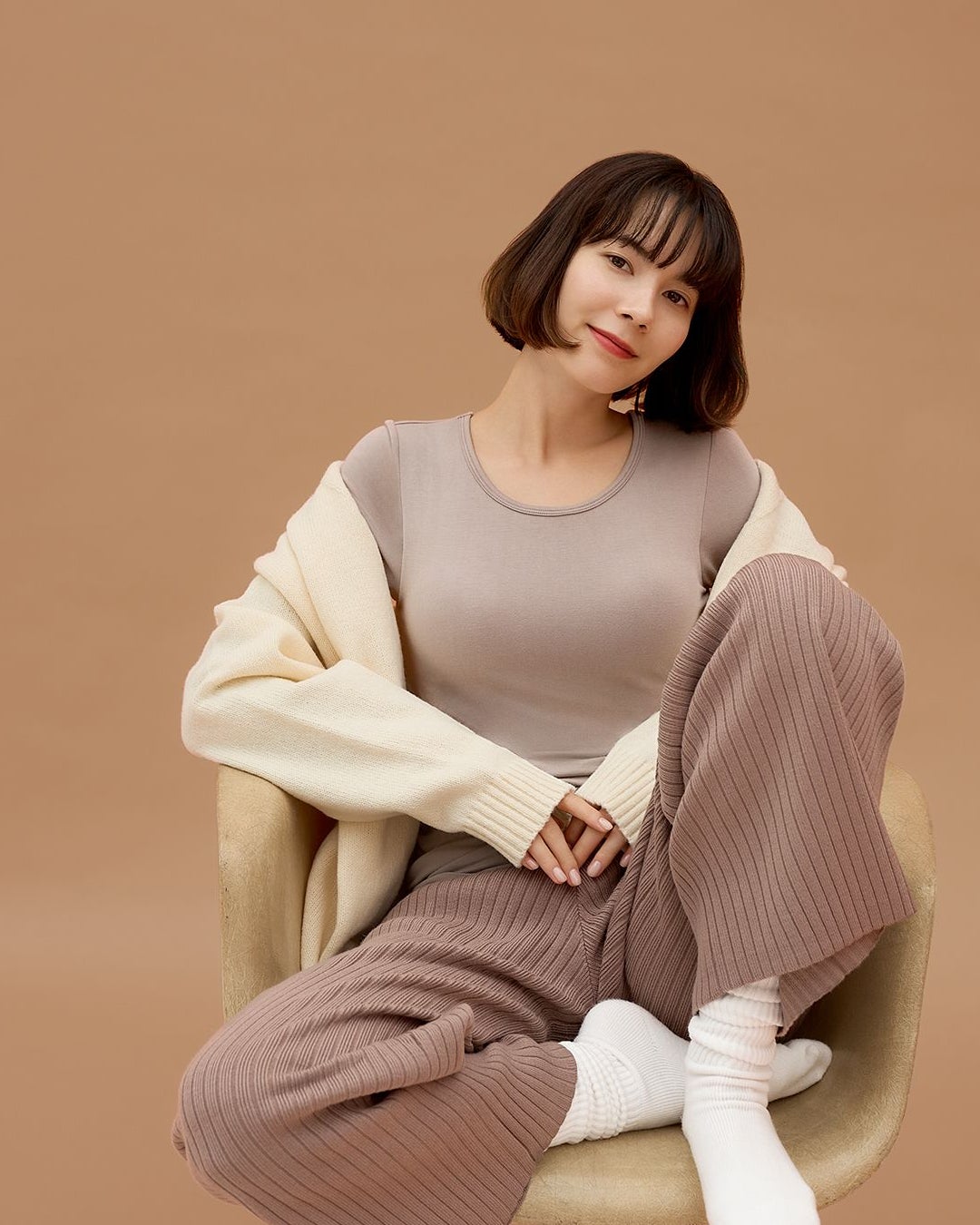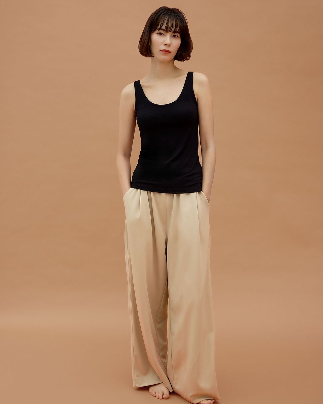 カップ付きだから1枚でラクなのに、「BAMBI WATER」にしか作れない特許取得(*1) の新技術で高いホールド力を実現。さらに遠赤外線加工素材であたたかく肌触りも良い軽い着心地でゴワつく冬の重ね着のインナーとしてだけでなく、リラックスウェアとしてもぴったりなアイテムです。