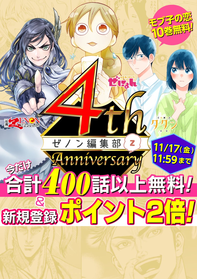 WEBゼノン編集部4周年記念!! 新規登録ポイント2倍、大型無料開放400話以上!! 『刀剣乱舞 外伝 あやかし譚』新作読切、豪華作家陣の特別読切13連弾など4大企画を開催!!