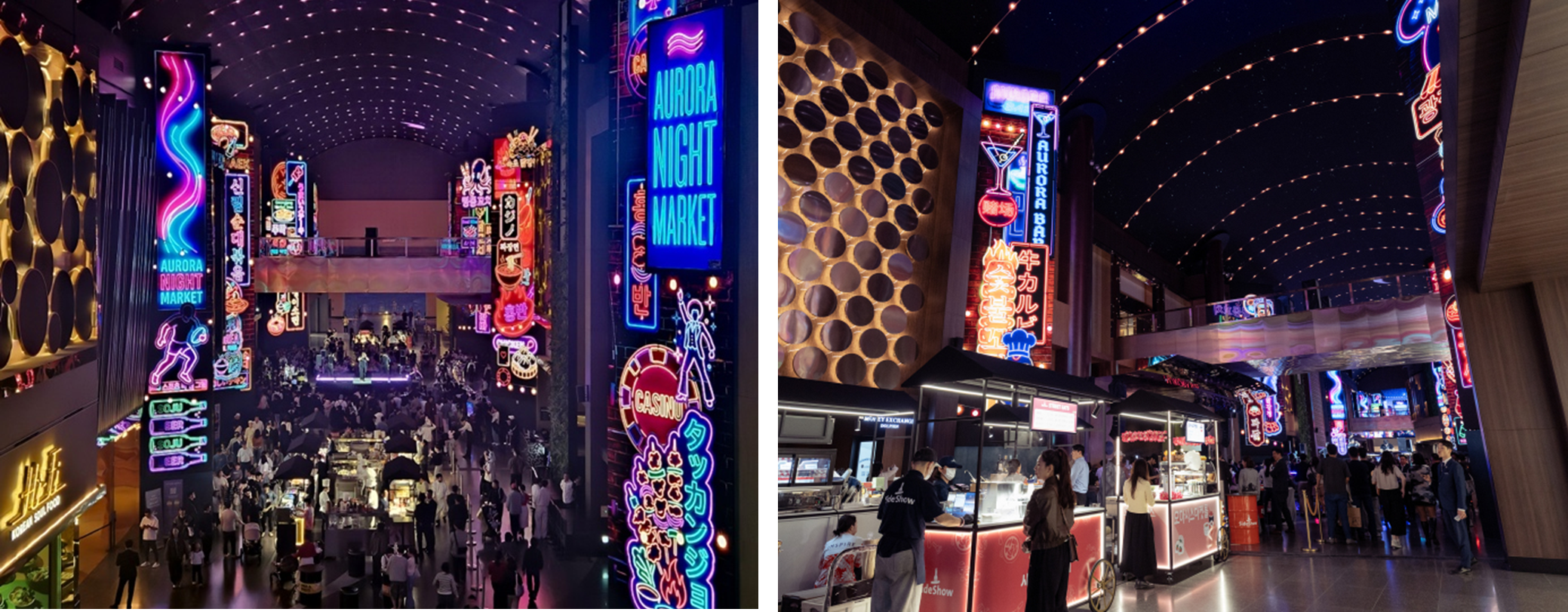 インスパイア・エンターテインメントリゾート(以下、インスパイア)は、屋内型韓国夜市フェスティバル「オーロラ・ナイトマーケット」を4月18日(土)から9月26日(土)まで開催中です。「オーロラ・ナイトマーケット」は、リゾート内の必見スポットであるデジタルエンターテインメント空間「オーロラ」を、韓国の屋台グルメが集まる活気あふれるストリートフードエリアへと変貌させ、現地の食堂街のにぎわいを再現します。家族連れはもちろん、国内外のお客様に幅広く楽しんでいただけるよう、毎週土曜日の20時から24時まで開催されます。