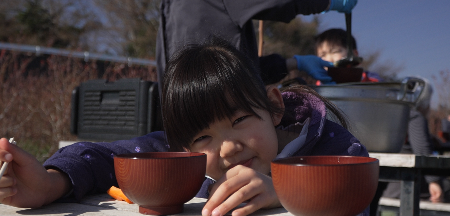 最後は、農場で用意された“野菜たっぷりの味噌汁”を、親子で味わいます。