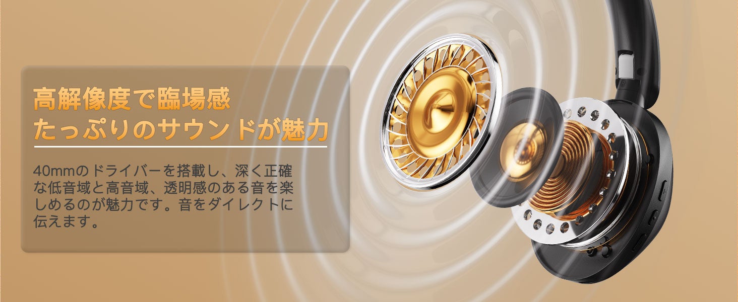 「40mm径ドライバー」を搭載し、重低音とメリハリのある中高域を実現しています。クリアな音を再生できるため、音楽に集中しやすいのが大きな魅力です。