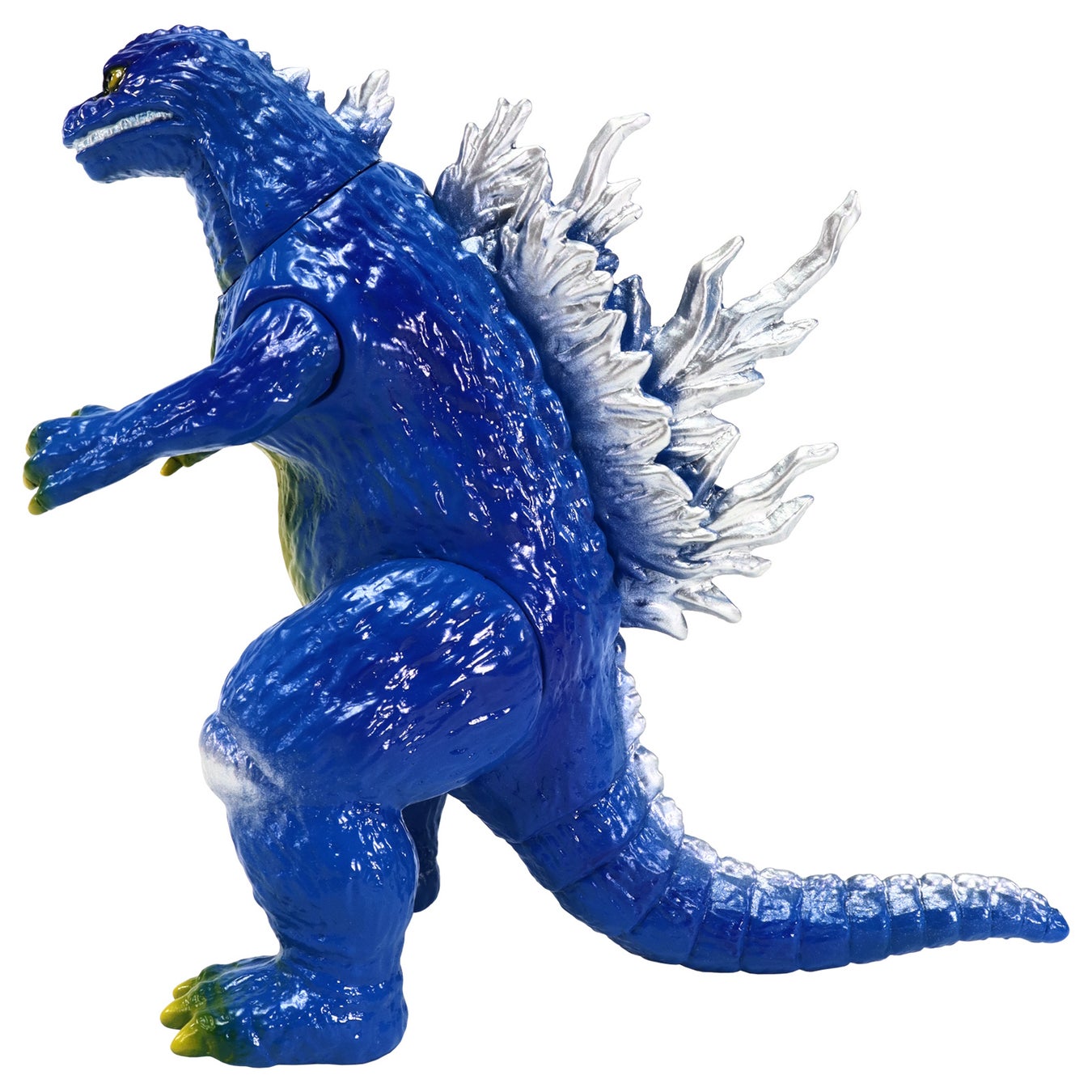 ベースとして、レトロソフビらしい光沢のある鮮やかなブルーに、ゴジラ(1999)の特徴的な鋭い目や、爪先や腹部にロゴイメージのイエローを彩色。