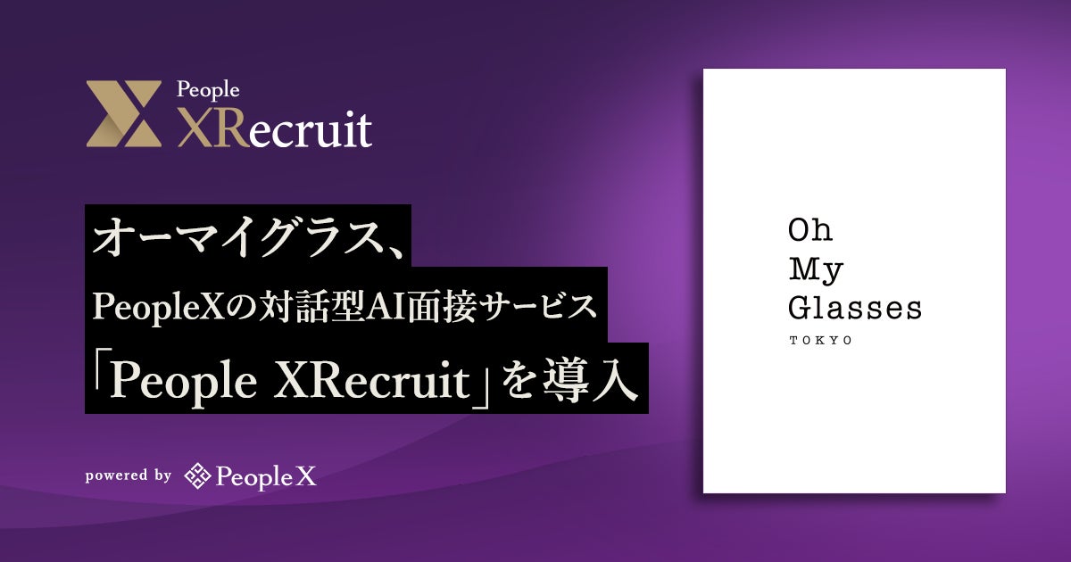 エンプロイーサクセス事業を推進する株式会社PeopleX(本社:東京都新宿区、代表取締役CEO:橘 大地、以下:当社)は、オーマイグラス株式会社(本社:東京都港区、代表取締役社長:清川 忠康、以下:オーマイグラス)に、当社が提供するデジタルヒューマンによる対話型AI面接サービス「People XRrecruit(ピープル・クロスリクルート)」を導入いただく運びとなりましたことをお知らせいたします。