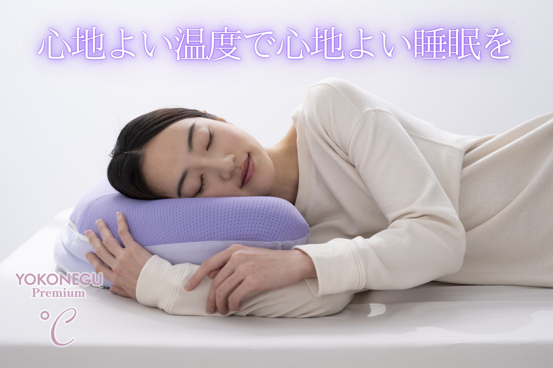 横向き寝が過半数を占める一方、寝具市場は仰向け寝前提設計のまくらが主流。そこで横向き寝時の温度変化を穏やかに整えるPCM素材に着目し、開発・採用したNewモデル「YOKONEGU Premium ℃(ドシー)」を2月13日より新たに発売します。