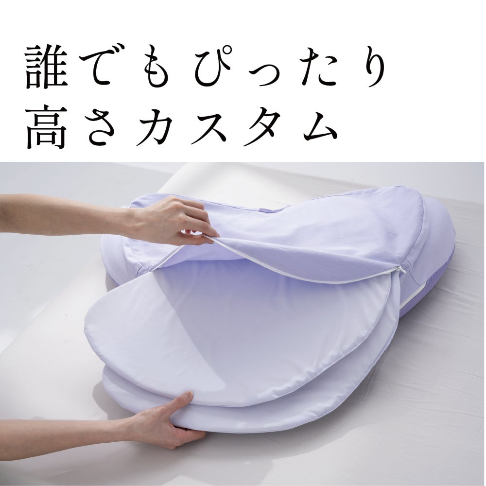 ■独自のブーメラン形状で心地良いフィット感とYOKONEGUシリーズに採用の特許取得済み”⼆階建構造”で横向き寝時の腕や肩への負担を軽減。