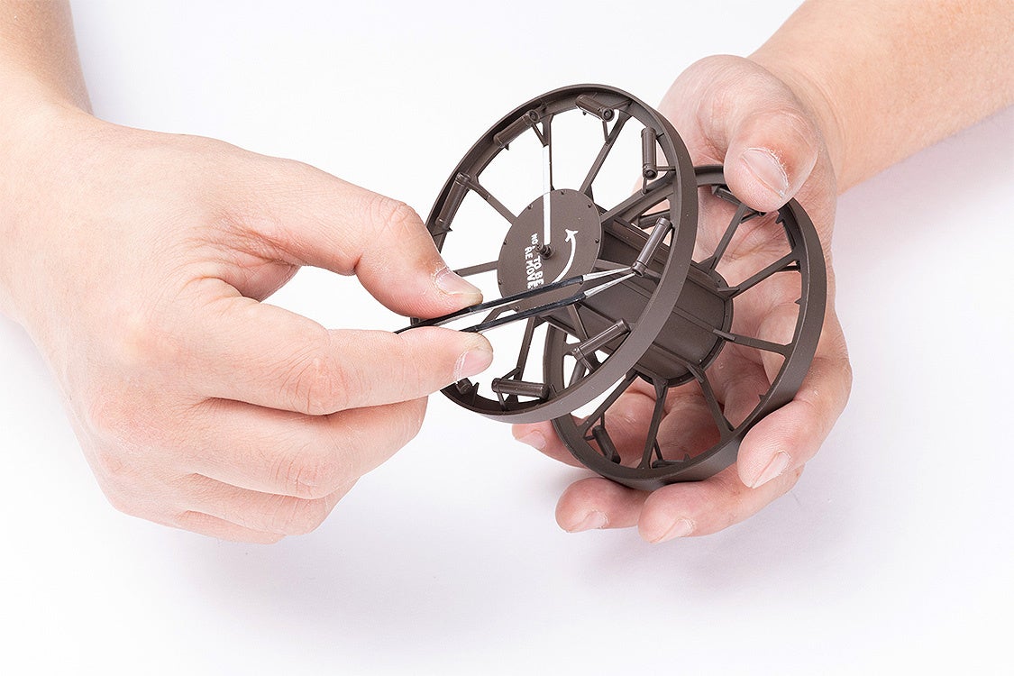 モデルは実車同様円形のため、転がせて楽しむことも可能。展示の為の輪留めパーツの付属も予定されています。