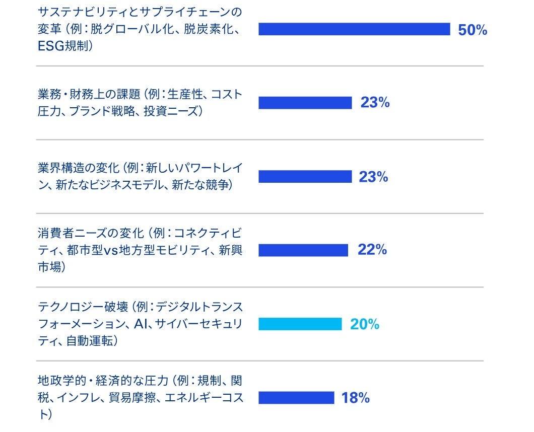 • さらなる地政学リスクの高まりに備え、74%の自動車企業がサプライチェーン戦略を積極的に見直している
