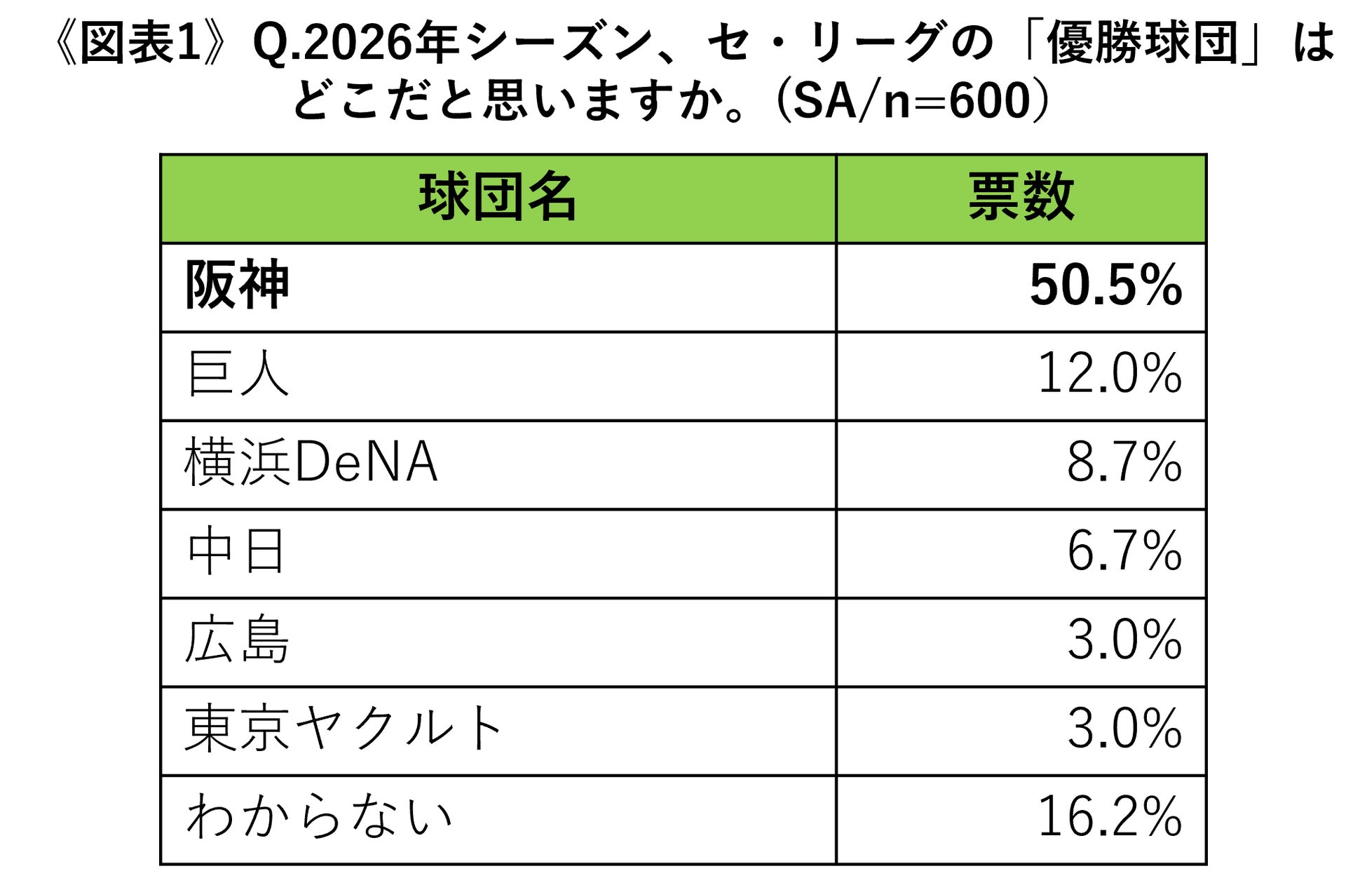 2026年セ・リーグ優勝予想1位は阪神、パ・リーグでは福岡ソフトバンクが最多支持を獲得。昨年の優勝チームが連覇するという予想に。