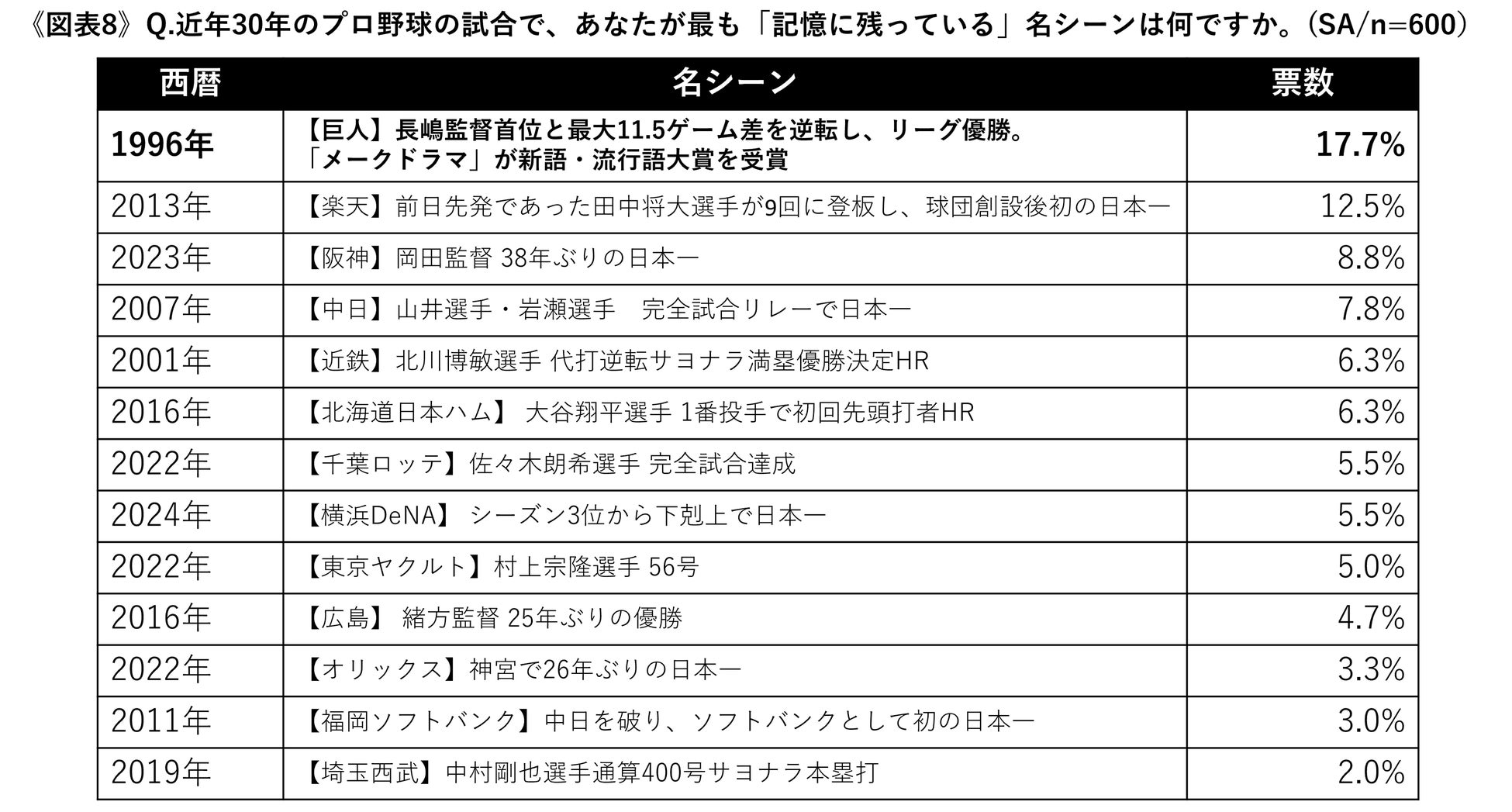 3位には【阪神】岡田監督が38年ぶりの日本一を果たしたシーン(2023年)という結果となりました《図表8》。