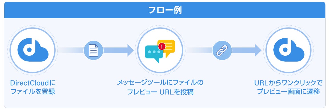 DirectCloudにファイルが登録されると、SlackなどのメッセージツールにファイルのプレビューURLを投稿します。