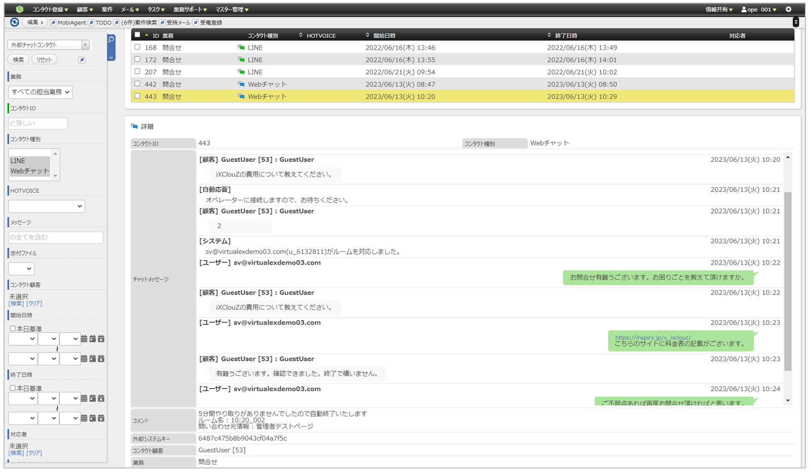 MOBI AGENTのユーザー外部連携機能によって生成されるIDを利用し、インスピーリ上で特定顧客と紐づけ、LINEチャットとWEBチャット、双方のチャネルから同時履歴取り込みと閲覧が可能になりました。また、匿名顧客の場合、履歴の取り込みを行うかどうかの選定も可能です。