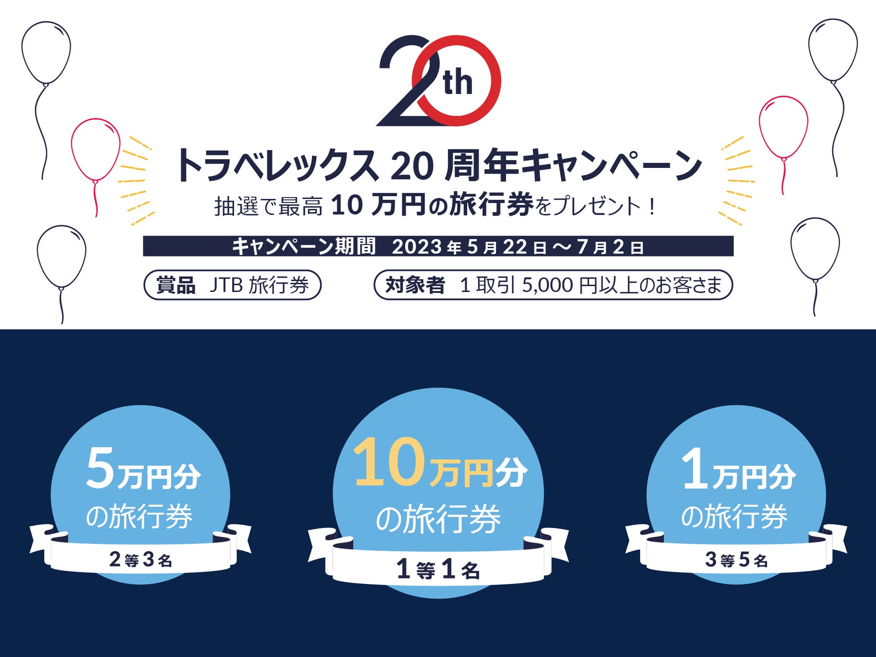 トラベレックスジャパン「最高10万円分の旅行券が当たる!20周年キャンペーン」開催