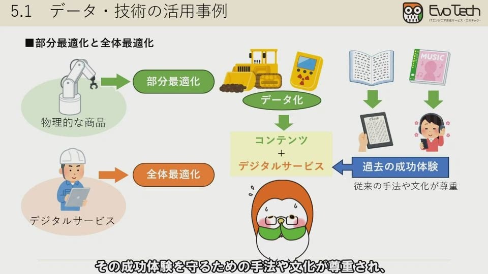 DXにおけるデータやデジタル技術の活用事例を学びながら、注意すべきポイントが多くあることを理解します。そのうえで、DXを推進するにはどのような意識を持ち、どのように行動すべきかを考えます。