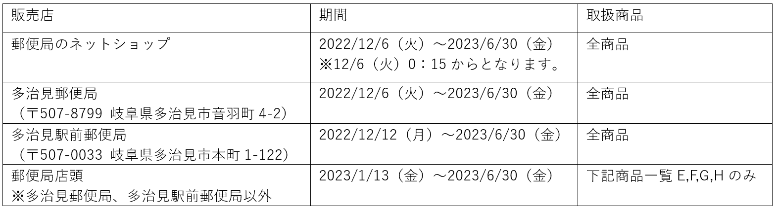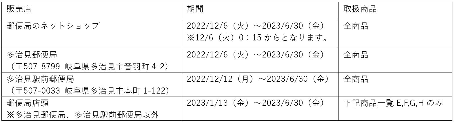 12月6日(火)郵便局のネットショップと一部店頭にて先行販売開始
