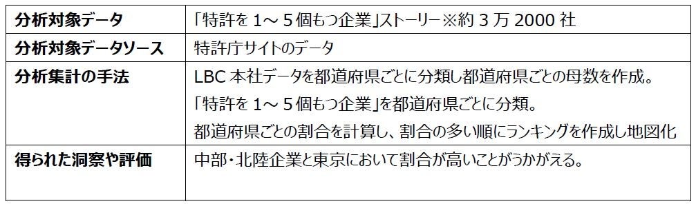 3:特許を1~5個もつ企業が多い都道府県ランキング