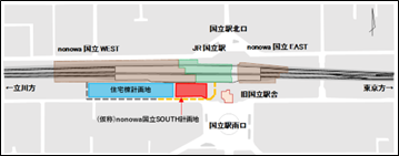 現在仮囲いの内部にて国立市及びJR グループ各社が開発中の施設について、最新の完成イメージ