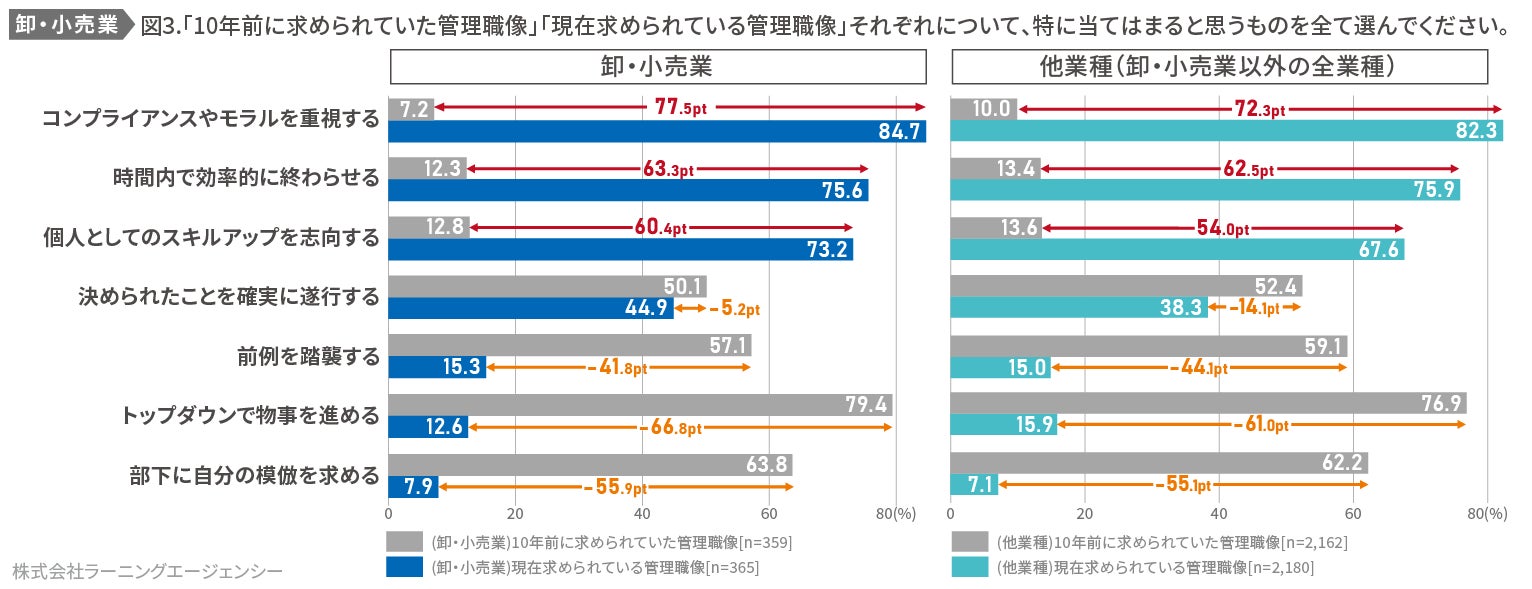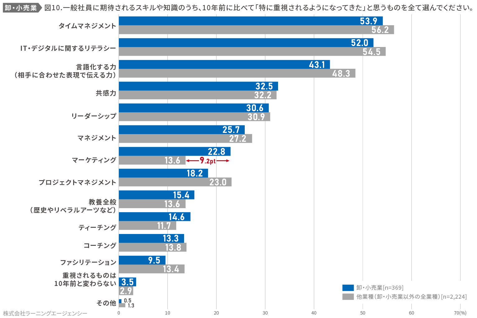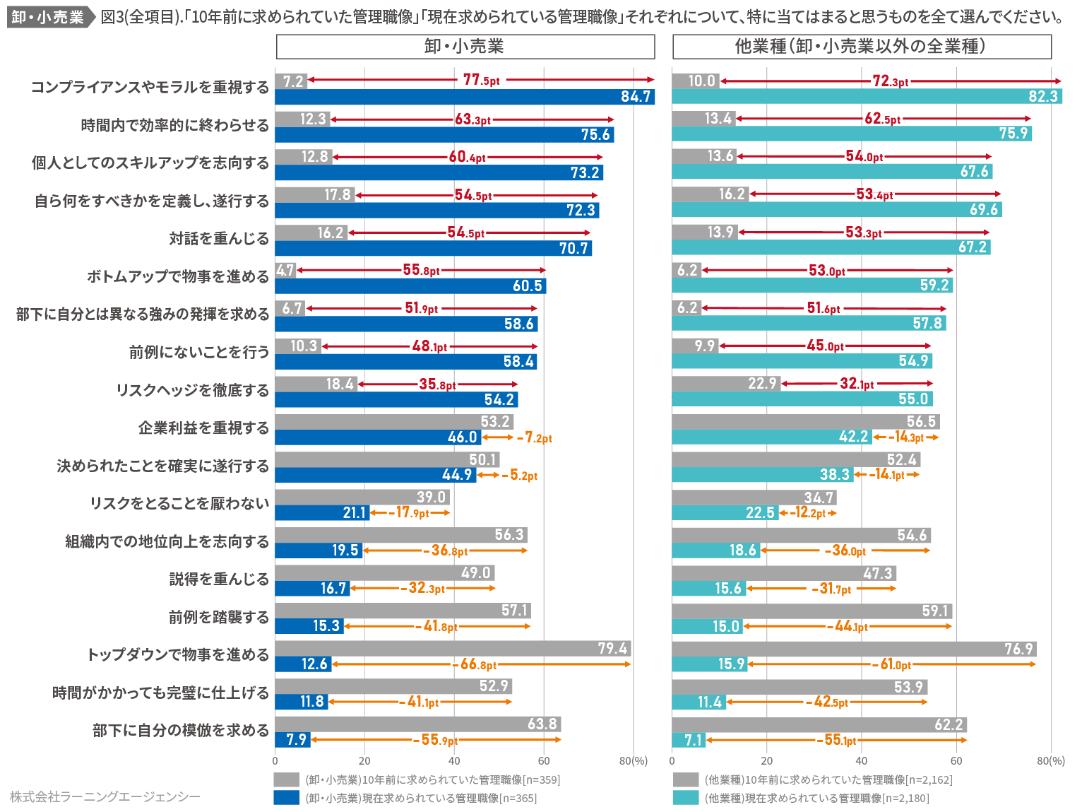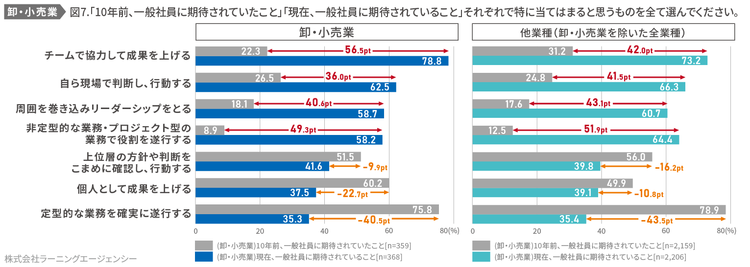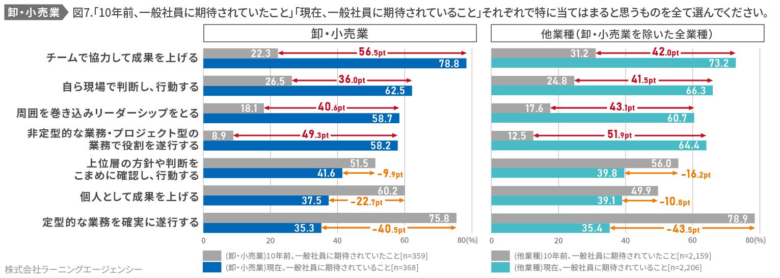 *本調査を引用される際は【ラーニングエージェンシー「卸売業・小売業の社員に求められることの変化に関する調査」】と明記ください