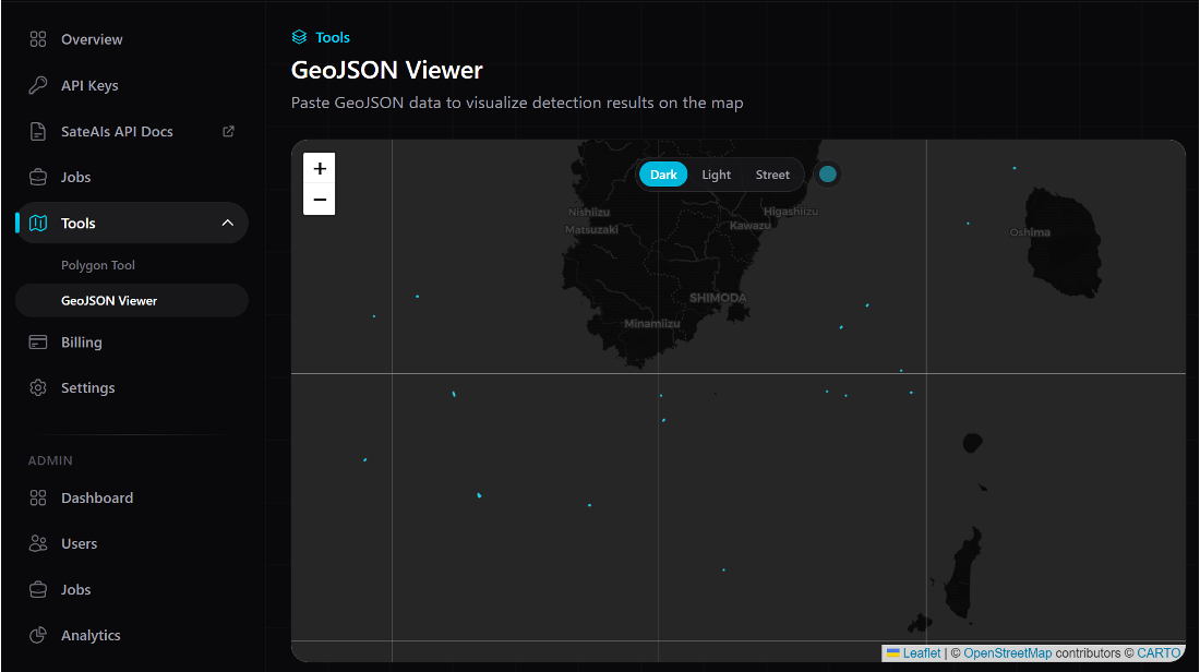 船舶検知AI(SateAIs 海 -Ocean-): 指定海域の船舶位置を自動検出
