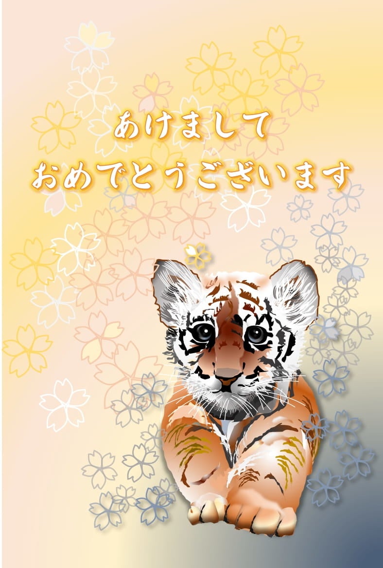 図形を使って水彩画風の寅を作成。一見図形で作成したとは思えないクオリティです。まるで生きているような瞳が印象的ですがとてもこだわって何度も修正していました。動物特有のモフモフ間も図形で表現するのはとても難しいですが、毛並みも上手に表現されています。背景のグラデーションにもこだわっており、梅の花びらもバックに合わせてグラデーションで表現。インストラクターでも再現できる自信がないぐらいの上級レベルの作品の完成です。