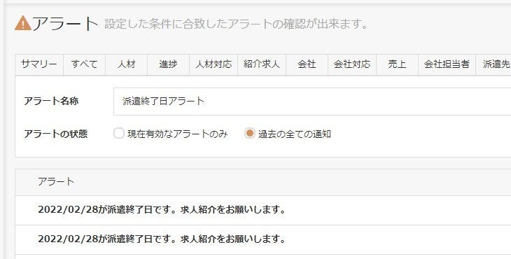 そのような派遣会社における状況を受け、この度「マルチアラート機能」をリリースしました。自社の事業に合わせて柔軟なアラート設定を行えることにより、抜け漏れのない管理だけでなく、積極的な派遣スタッフ・企業対応の実現をご支援します。