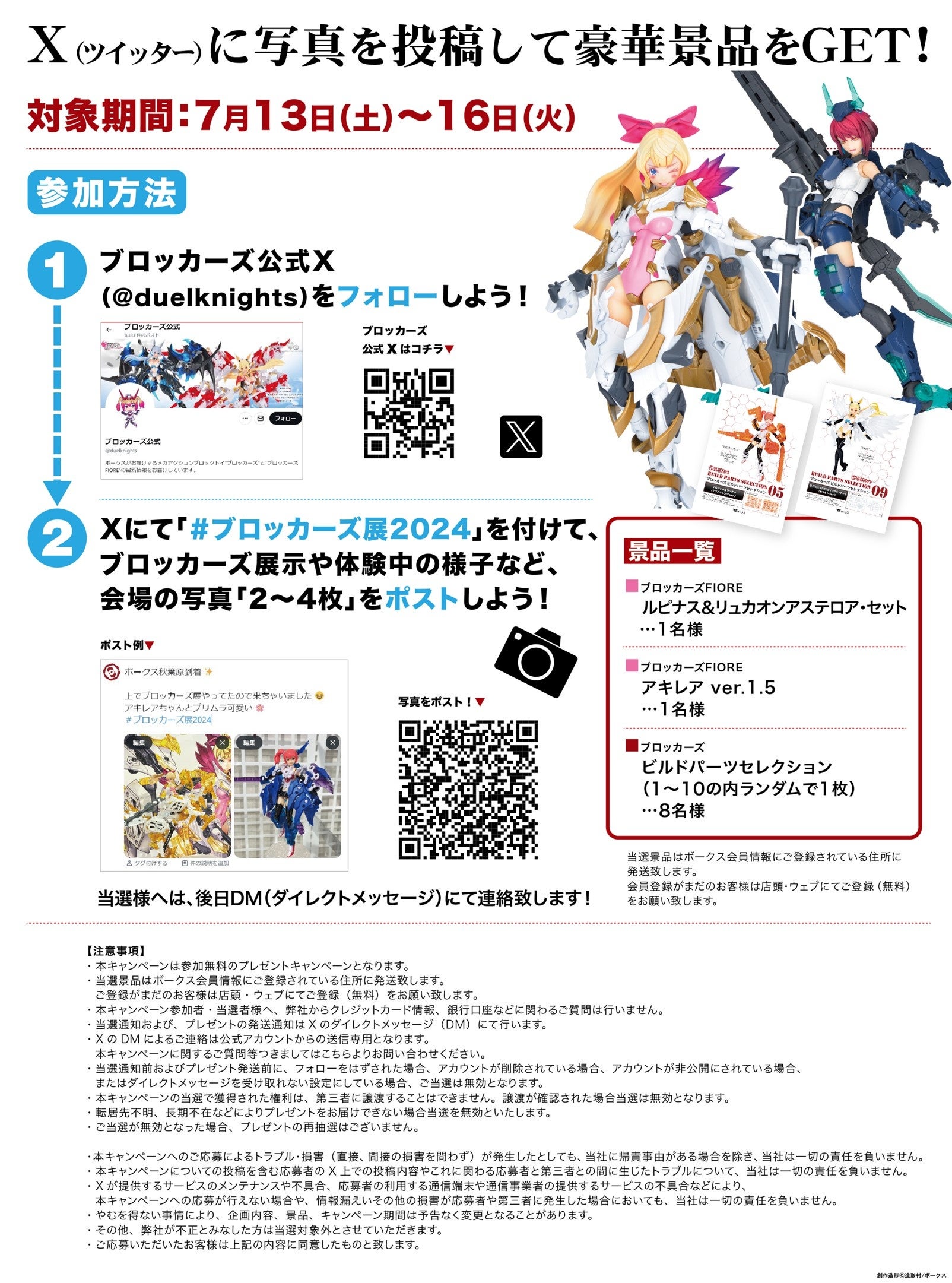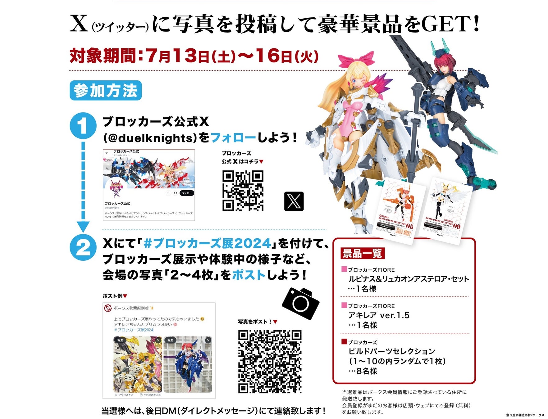 ブロッカーズ公式Xアカウント(@duelknights)をフォローして、会場の様子をポストすることで「ブロッカーズ FIORE ルピナス&リュカオン アステロア・セット」など豪華景品を抽選で合計10名様にプレゼント。こちらは会期翌日の16日(火)まで実施します。