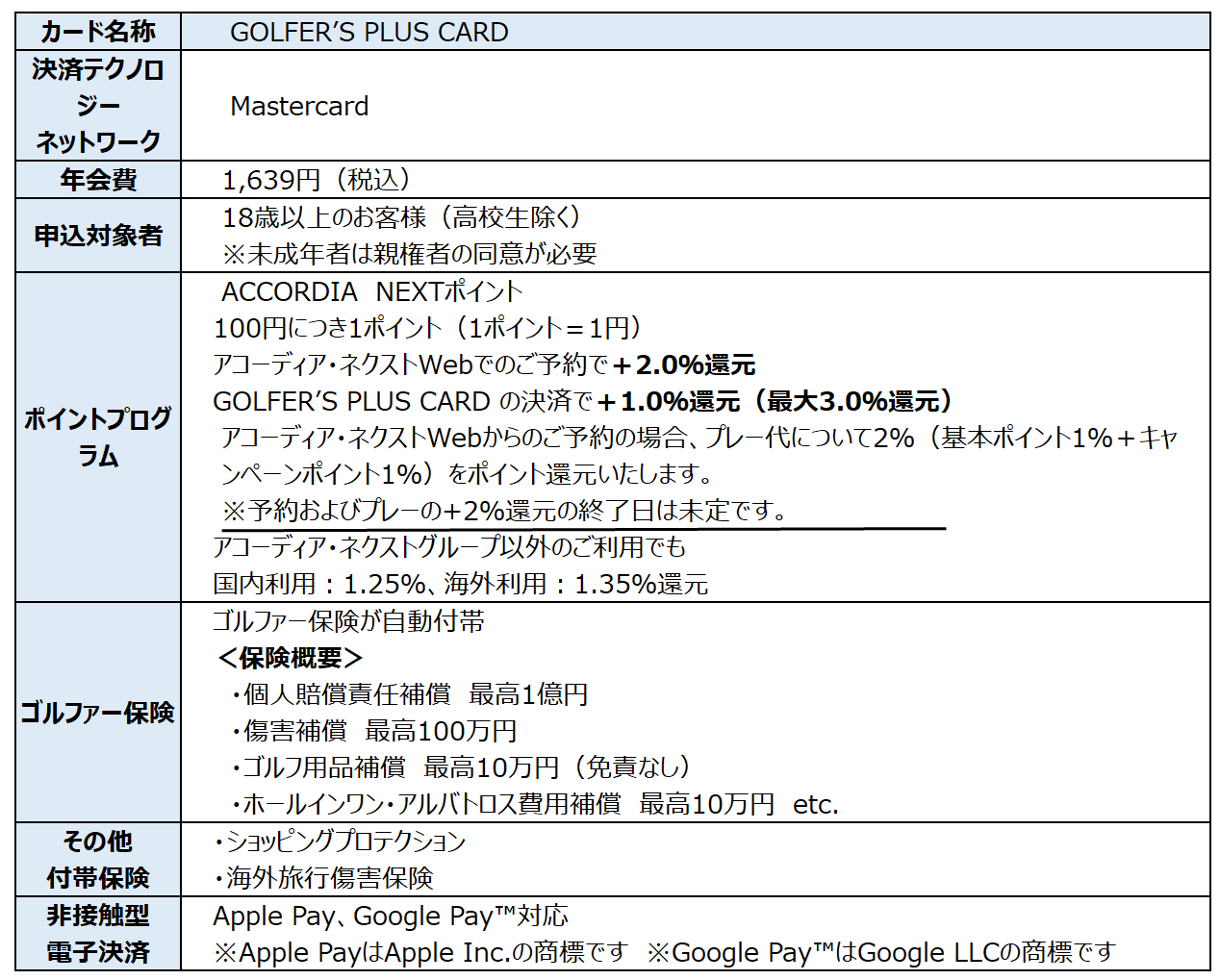 【GOLFER’S PLUS CARD 概要】