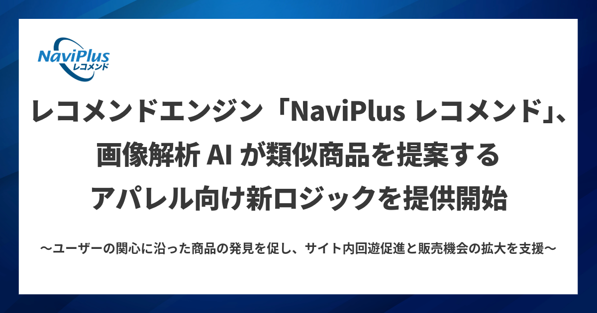 レコメンドエンジン「NaviPlusレコメンド」、画像解析AIが類似商品を提案するアパレル向け新ロジックを提供開始