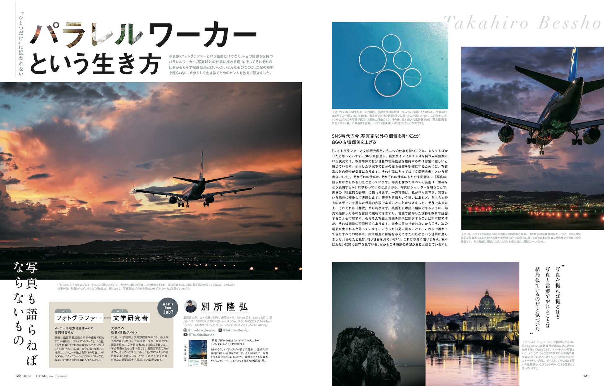写真を愛するすべての人に知ってほしい、撮るという仕事の真実。写真で生きることを選んだプロフェッショナルたちは、どんな道を歩き今に辿りついたのか?どんな喜びやプレッシャーがあるのか?写真の見方が必ず変わる特集です。