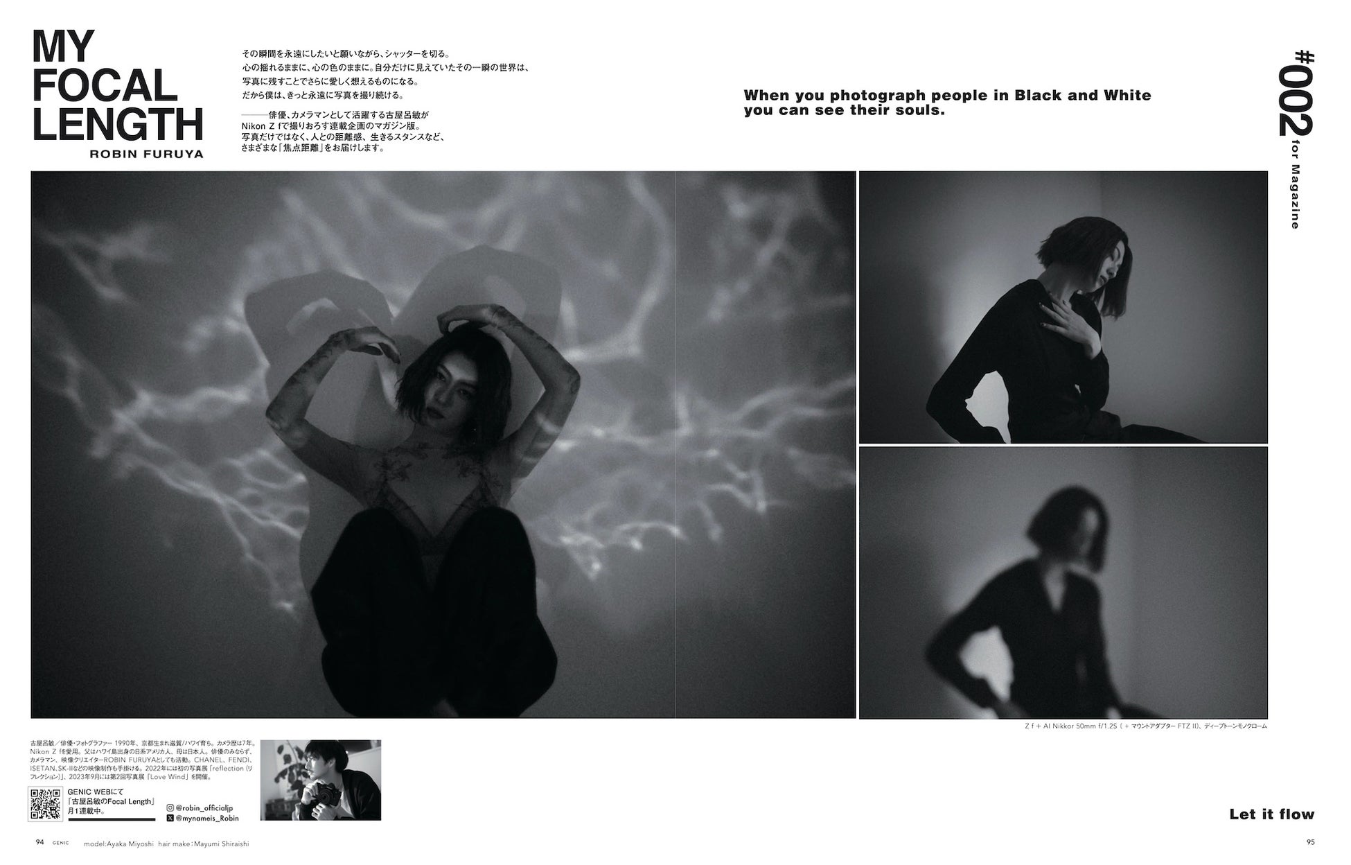 俳優、カメラマンとして活躍する古屋呂敏が、人との距離感、生きるスタンスなど、さまざまな「焦点距離」をテーマに「Nikon Z f」で撮りおろす連載。第2回はモデルとして三吉彩花が登場。