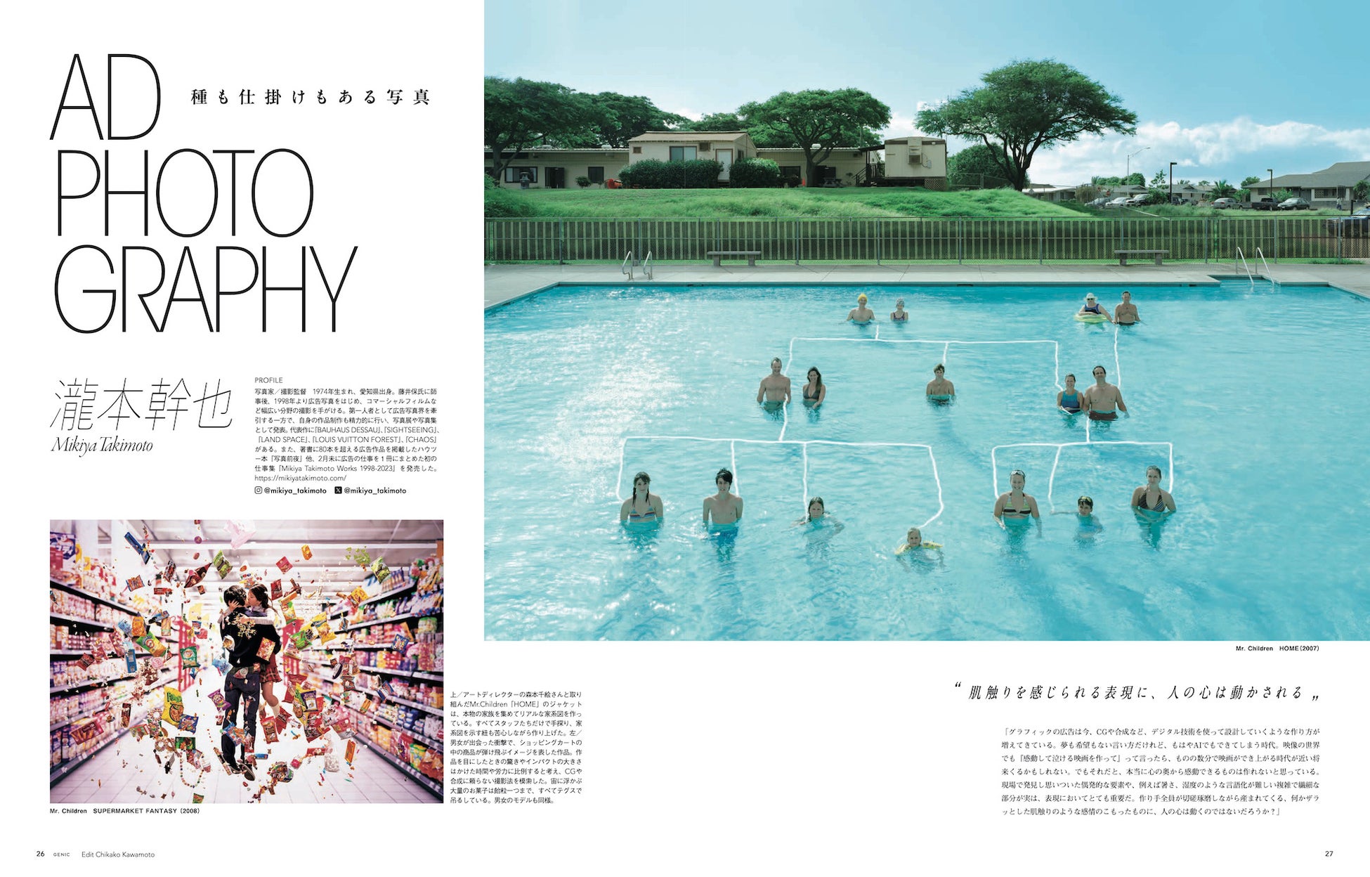 誰もが知る広告写真、コマーシャルフィルムの数々を手掛けるトップランナー瀧本幹也。「種も仕掛けもあるけれど、そうは見えない。そこに“違和感”が生まれ、それが人を引きつける広告になる」。本特集は、本人がそれぞれの作品の「種」を明かしながら、CGや合成を使わず人の手によって生み出す「肌触りを感じられる表現」の大切さについて語る、必読のインタビューです。