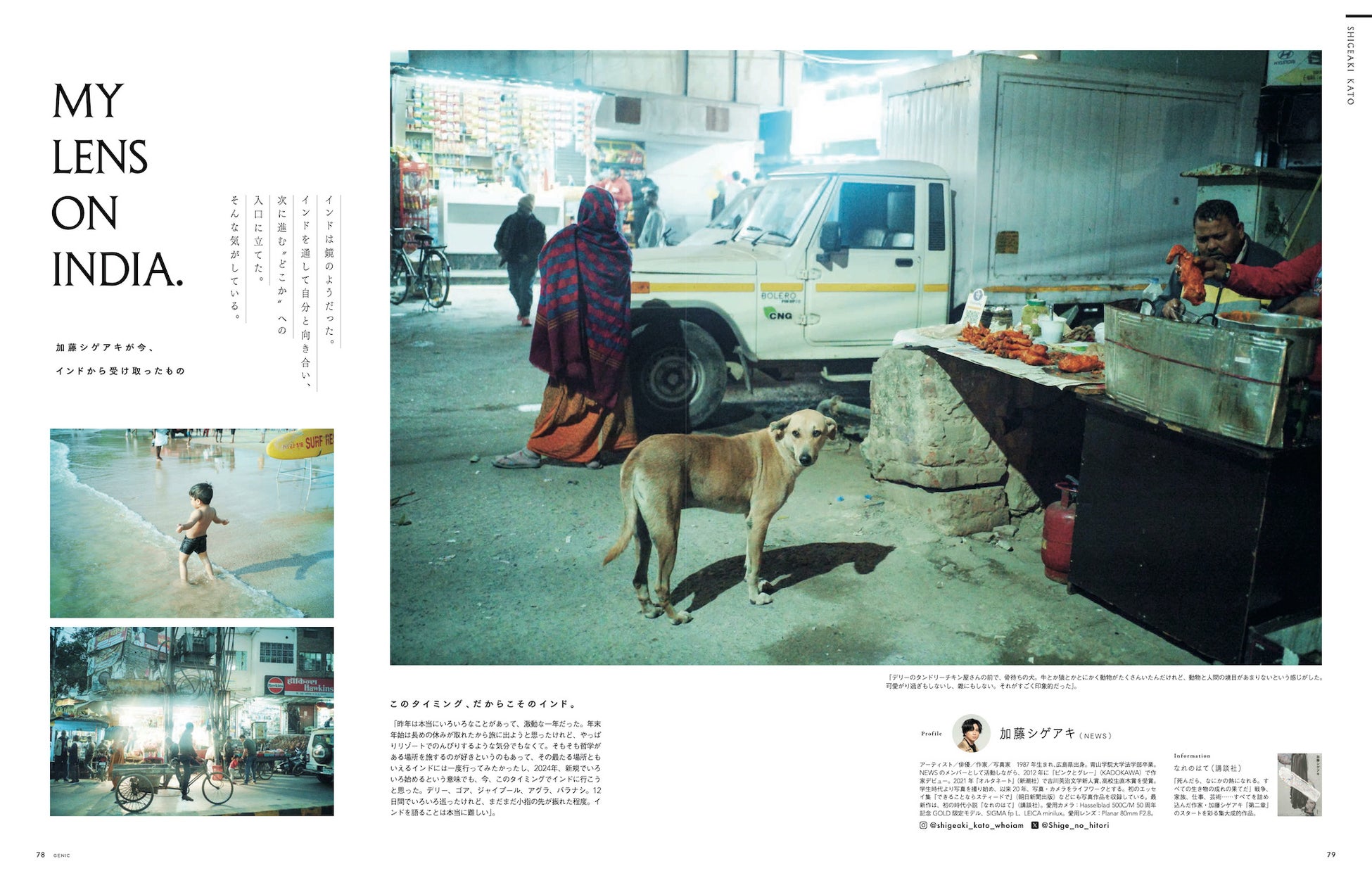 「昨年は本当にいろいろなことがあって、激動の一年だった」。だからこそ今行こうと思ったというインド。この旅を通して、次に進む “どこか” への入口に立てた気がしていると語る加藤シゲアキが、レンズを通して向き合ったのは人々の生活。本人撮影の写真とインドで感じた大切なことを、6ページにわたりお届けします。
