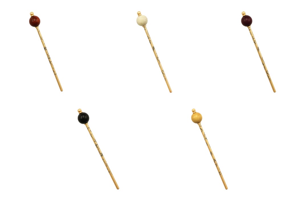 各国の天然木を使用し、自然の木の色味を活かした優しい風合いが楽しめます。丈夫な真鍮軸には天然木のイメージに合わせ花や蔦をデザインに落とし込みました。