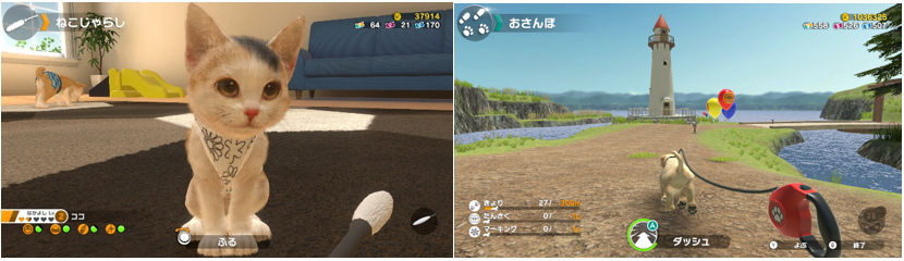 本作は、本物さながらの表情や仕草をする犬や猫との生活を送ることができる作品です。 犬や猫の育成シミュレーションゲームは、これまでも人気を博したジャンルですが、Nintendo Switchならではの特色や機能を活かすことで、新しいコミュニケーションを実現しました。造形やアニメーション、細かな毛並みに至るまでこだわったビジュアルに加えて、HD振動を通じて犬や猫と本当にふれあっている様な感覚を楽しむことができます。
