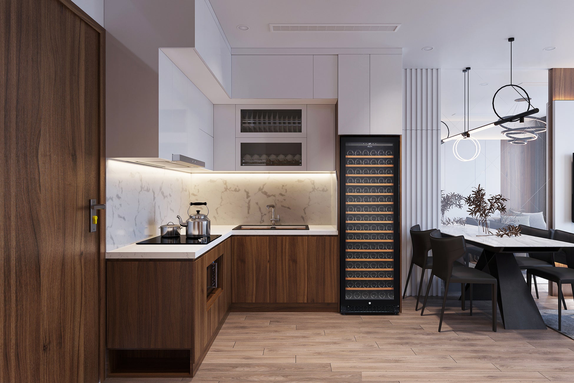 本製品の最大収納本数は171本と、フォルスタージャパンのラインナップの中で最も容量の大きいモデルとなります。通常のワインセラーと同様に据え置きとしての使用はもちろん、システムキッチンなどへビルトインとして設置することも可能な前面放熱タイプシリーズの新商品であり、前面排気により放熱スペースを最小化(左右5mm、背面5mm、上部5mm)することで、省スペースでのご使用が可能です。