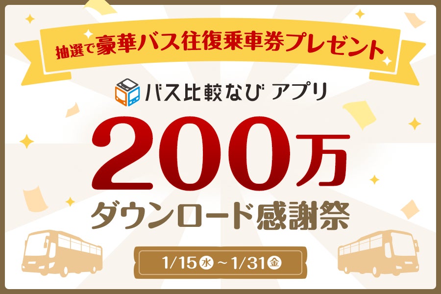 【バス比較なびアプリ】200万ダウンロード達成記念!豪華バス旅プレゼントキャンペーン
