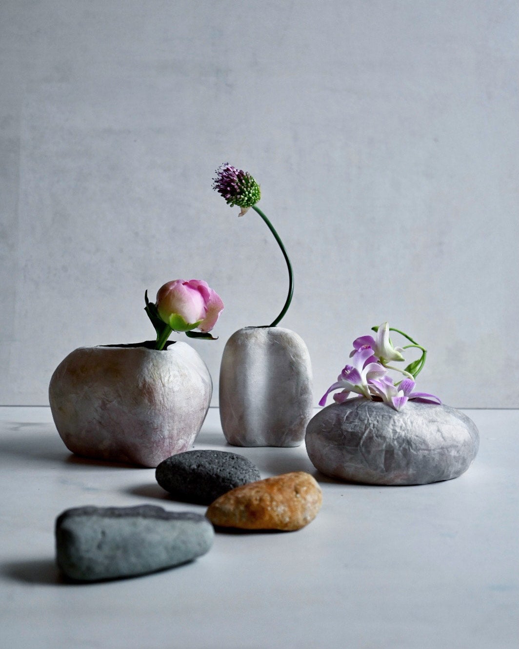 和紙を重ね暮らしにそっと寄り添うような花器を展開するブランド。内側は樹脂でコーティングしているため、お水を入れてディズプレイが可能。