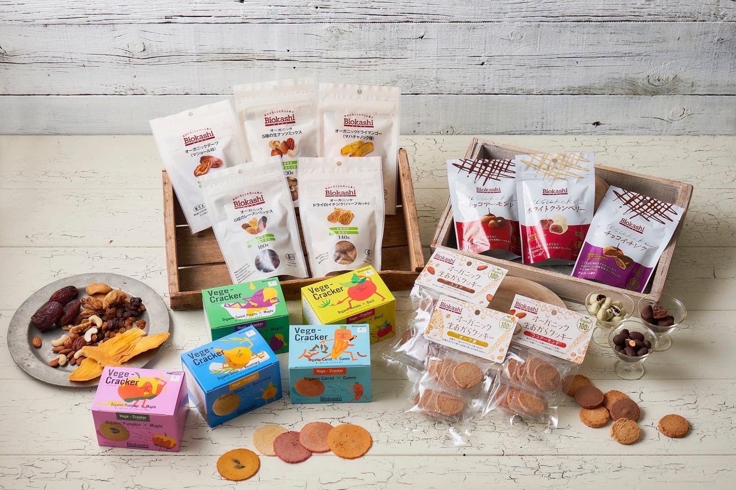 世界中から選び抜いた有機素材の美味しさを、ぎゅっと詰め込んだオーガニックのお菓子シリーズ。新商品「VegeCracker」は、関西初登場。
