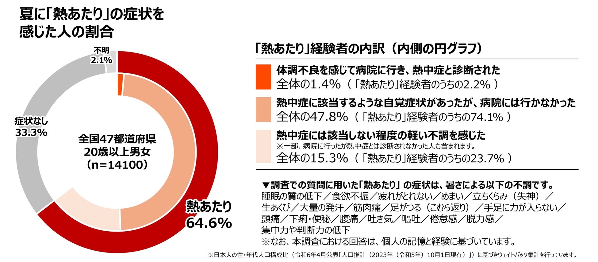 1. 2024年夏、「熱あたり」 の症状を経験した人は64.6%