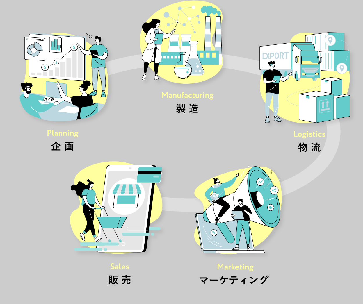 D2C事業に必要な全てのノウハウをワンストップでサービス提供し、価値あるブランドを世の中に届ける支援をしています。これまで複数のD2Cブランド事業を成功へと導いてきた社内の知見を最大限活用し、商品の企画から製造・物流・EC構築・販売まで、全てを一気通貫でサービス提供し、最短3ヶ月でブランドの立ち上げをサポートいたします。