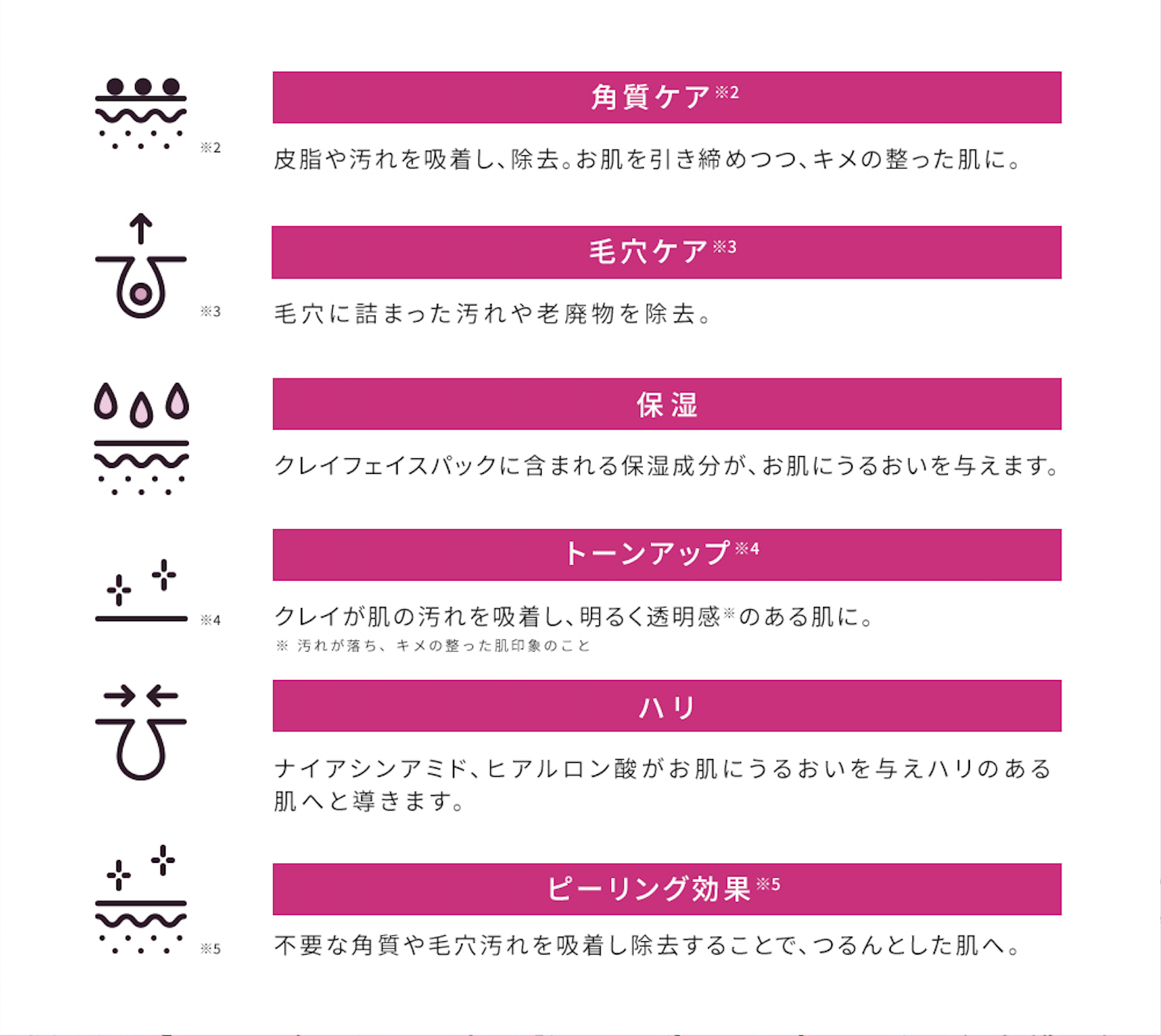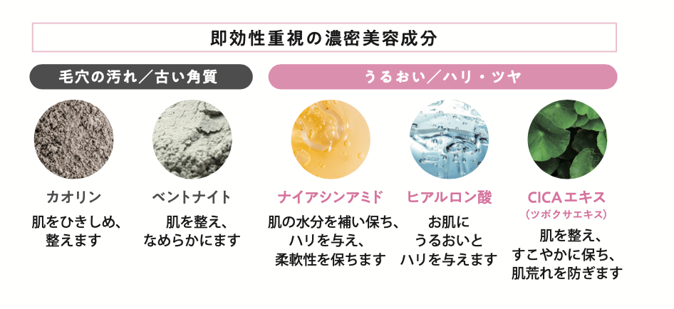 毛穴の汚れや古い角質を吸着・除去してくれ、きめの細かいお肌に。