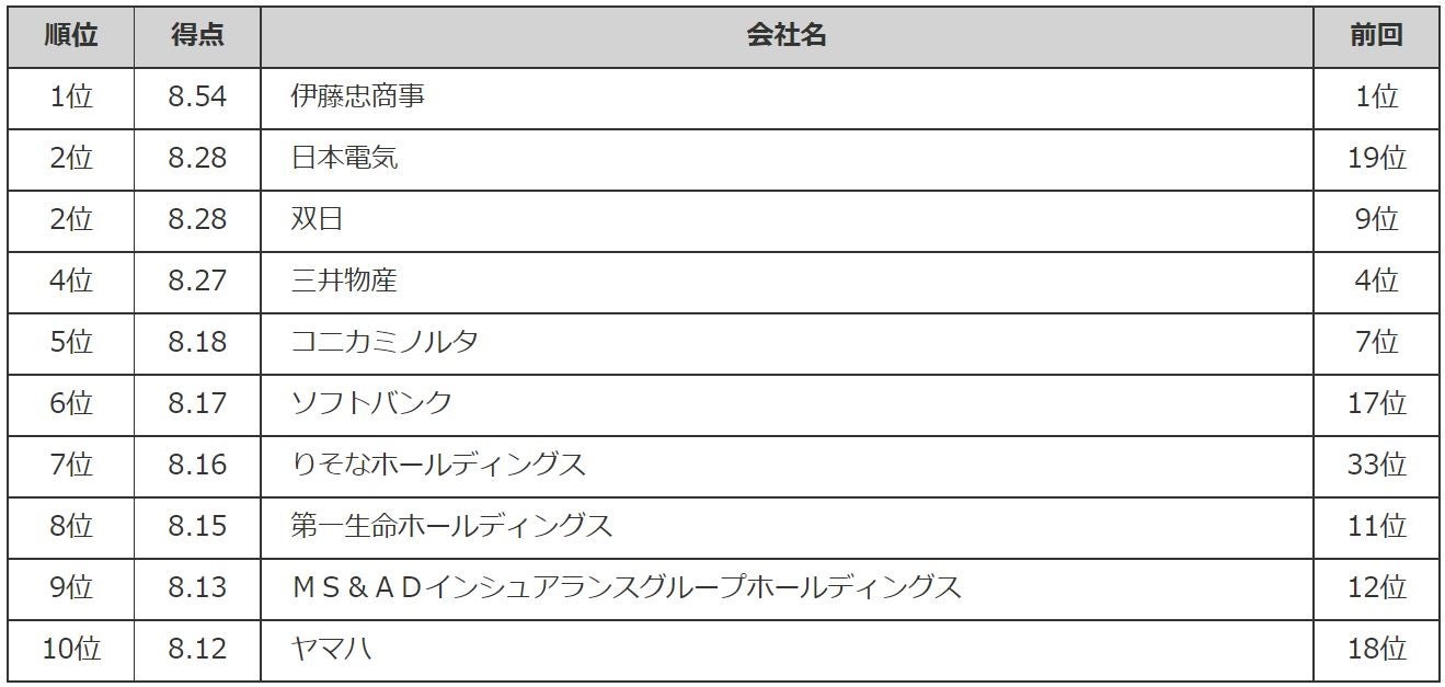 ~「伊藤忠商事」が2年連続で総合第1位を獲得!~