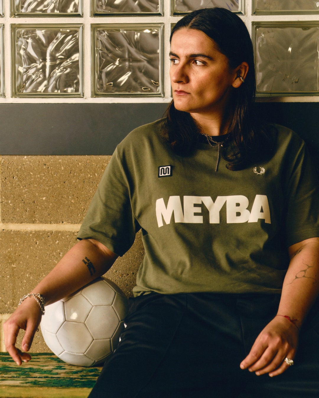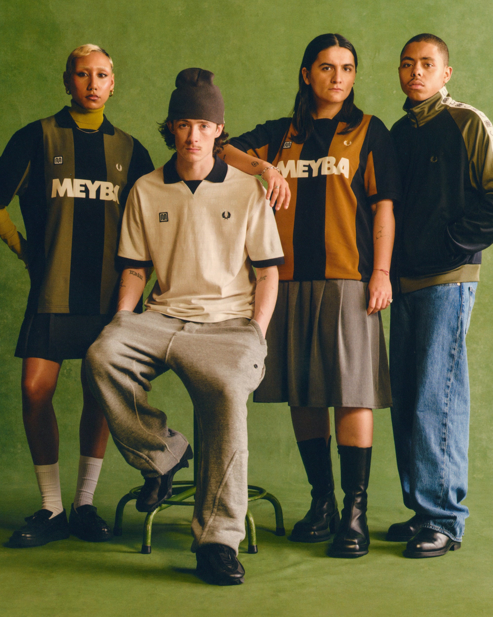 コレクション全体に採用されたリラックスフィットは、スポーツウェア特有のノスタルジーと、今のムードを同時に感じさせる仕上がりです。胸元には、FRED PERRYのローレルリースと、MEYBAを象徴する「Mitica M」ロゴを並列で配置。どちらも長い時間をかけてスポーツの現場で培われてきた、由緒あるエンブレムです。このコレクションは、特定のルールや着こなしを押し付けるものではなく、着る人それぞれが自由に解釈し、自分自身のスタイルとして取り入れることを前提とし、スポーツをルーツに持つ“ユニフォーム”を、日常へと解き放つことを提案しています。