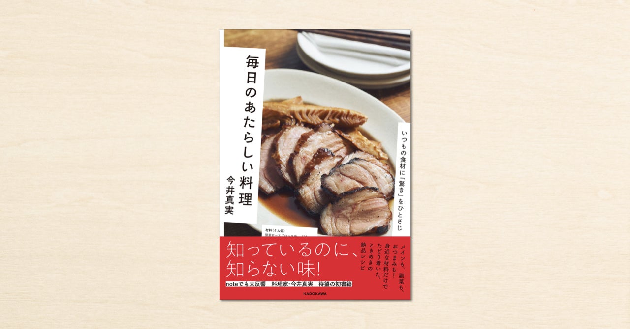 メディアプラットフォームnoteで、料理家・今井真実さんが投稿した記事が『毎日のあたらしい料理 いつもの食材に「驚き」をひとさじ』としてKADOKAWAから2月16日(水)に発売されます。今井さんは、「30年間作り続けてやっと辿り着いた最後のカルボナーラレシピ」など簡単だけど手抜きにはならないレシピをnoteに投稿。本書は、それらの身近な材料だけでできる絶品レシピをまとめた一冊です。