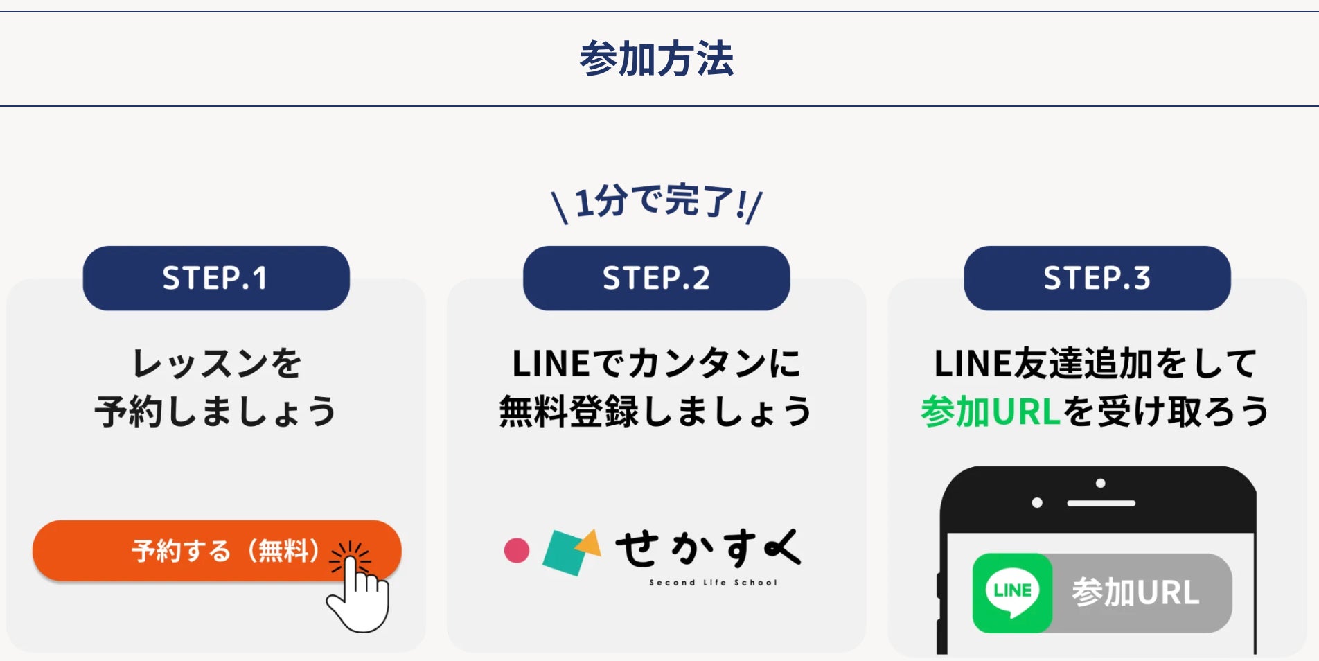セカスクに登録後、参加URLを受け取り、当日レッスンに参加。