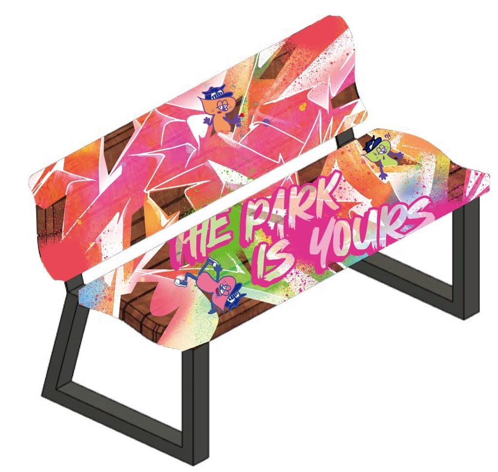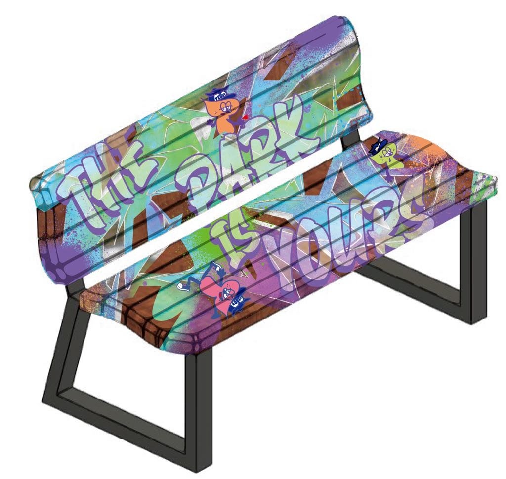 アートベンチを池袋西口公園に隣接する「グローバルリングカフェ」に設置。
