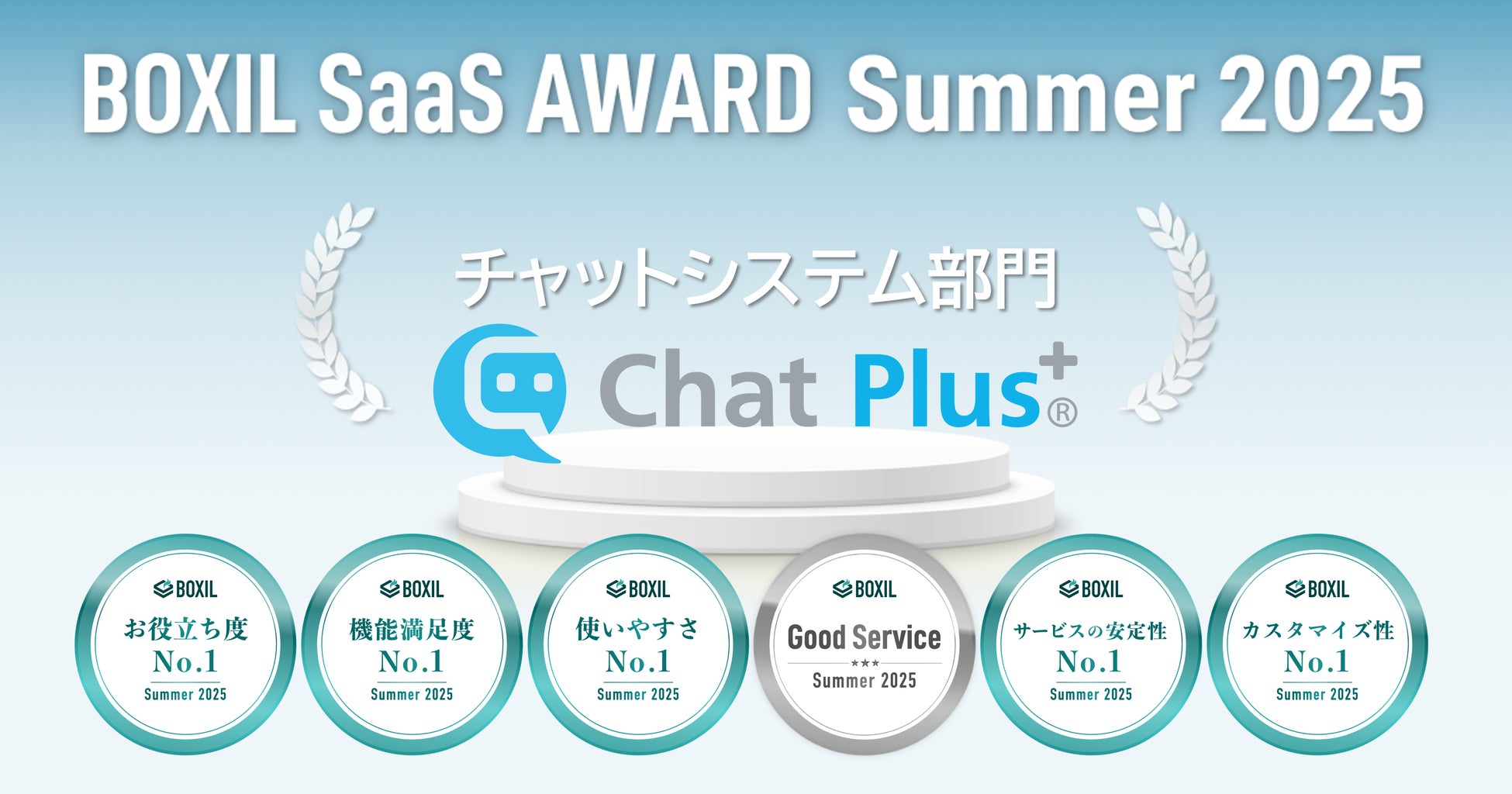 生成AI対応のチャットサポートシステム「ChatPlus(チャットプラス)」、「BOXIL SaaS AWARD Summer 2025」チャットシステム部門で6つの賞を受賞