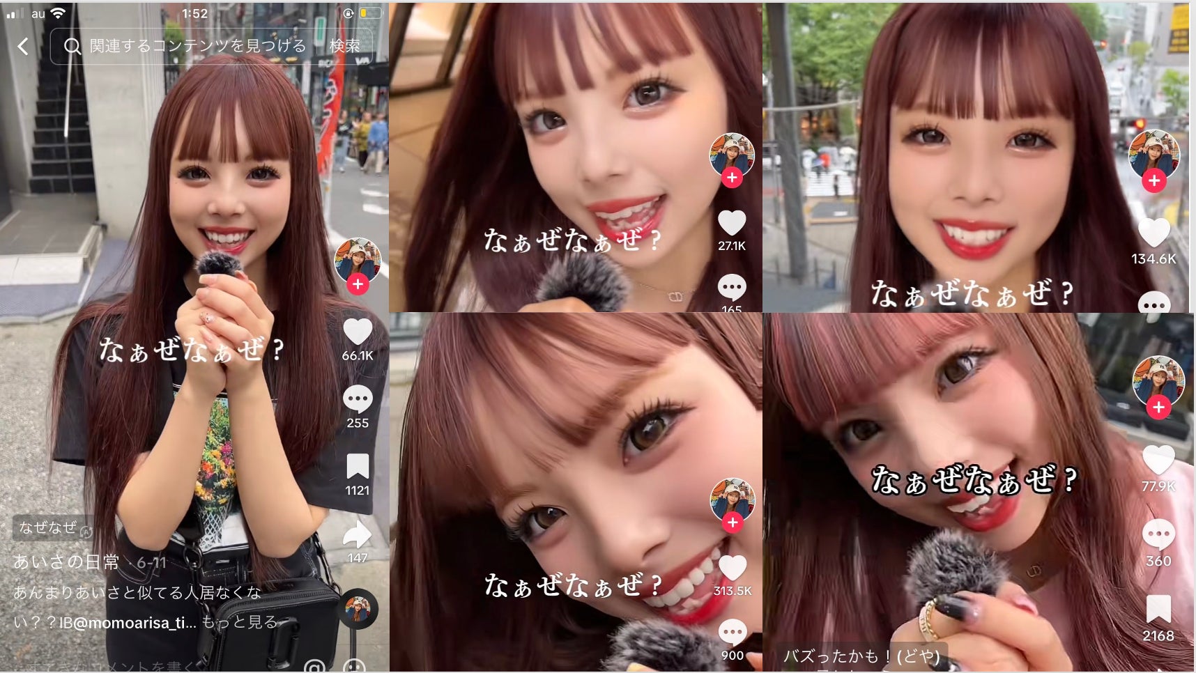 また、「なぁぜなぁぜ」の発祥は、六本木のラウンジ「FABRIC LOUNGE ROPPONGI 7」に勤務する桃園ありさ(ももらんどありさ)さんが、TikTokに動画を投稿したのが始まりと言われています。「なぁぜなぁぜ」を使った関連投稿は6.4億回視聴され、TikTok内で、”2023年最大のバズ”と言っても過言ではないでしょう。