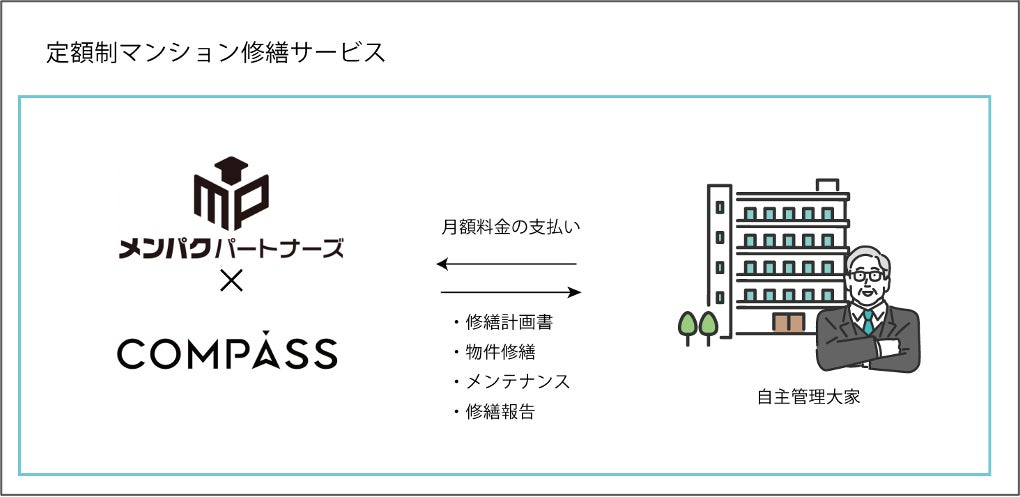 COMPASSとメンパクパートナーズは、自主管理大家さんへのサービス拡充を図るため業務提携をいたしました。本提携により、COMPASS会員の自主管理大家さんは、メンパクパートナーズが提供する定額制マンション修繕サービス「メンパク」を利用可能になります。